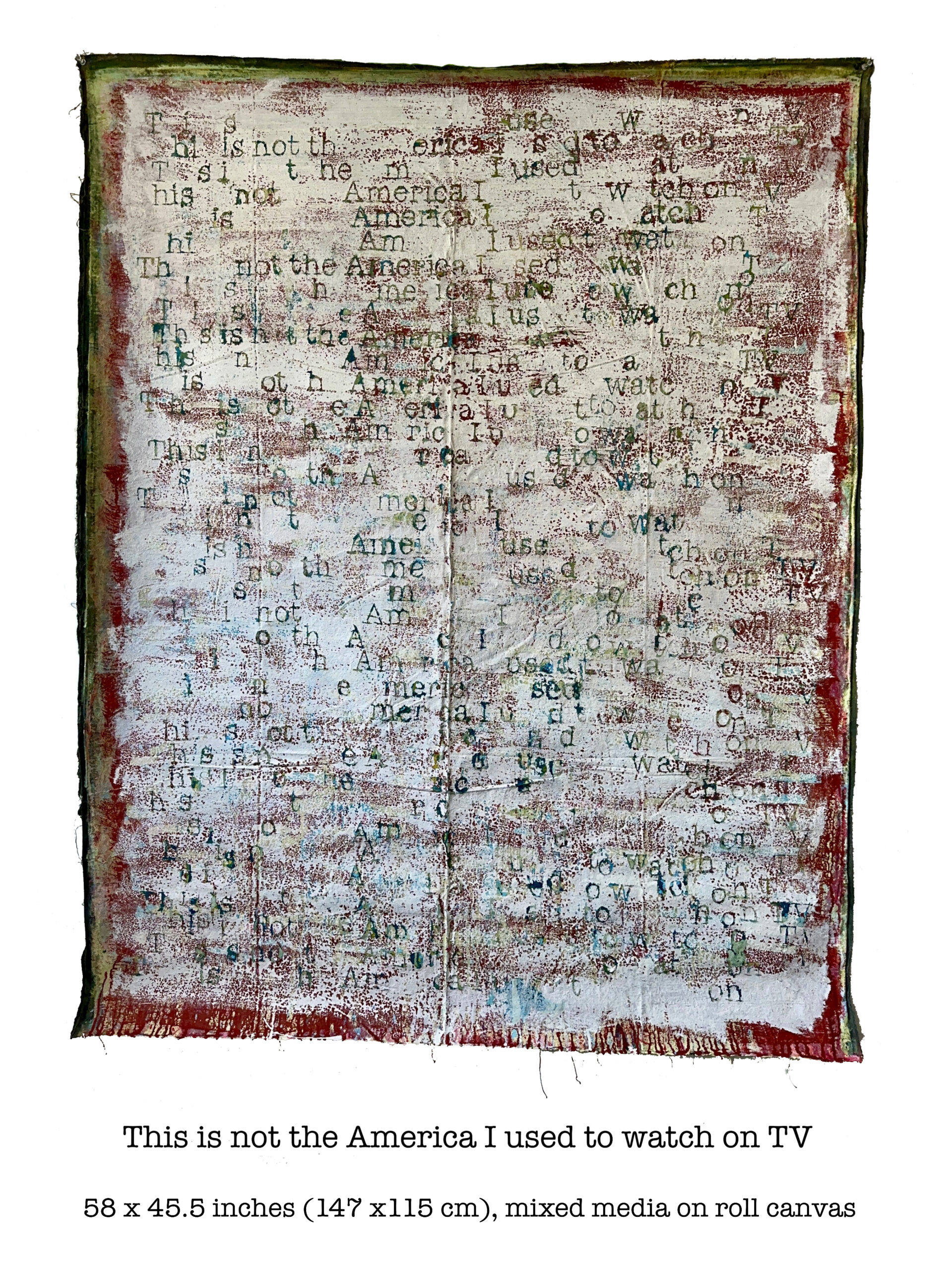 The idea of losing something to make room for something else is a recurring theme in my life and my art. Somewhere in my career as an artist, around 2011, I made a conscious decision to remove figures from my work. It took time, but eventually, words began to fill my canvases. These words represent the absence of figures. They tell the same stories, but now in a form that is both readable and, at times, cryptic. The stories are funny and sad, quirky and serious, all at once. The stories are the same, but the characters have changed—this time, from figures to words.